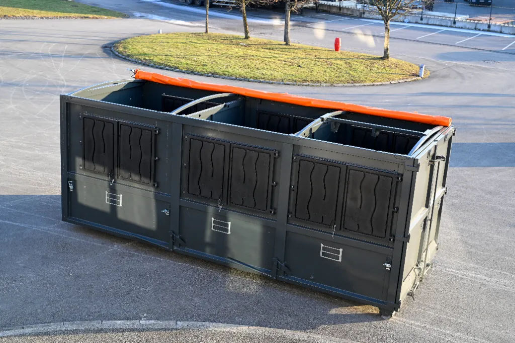 Benne de 35 m3 fermée, fabrication 100% française, 100% recyclable,